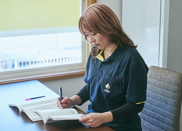 先ほども書かれていたように、介護の仕事をはじめるのに、特別な資格は必要ありません。しかし、より高いレベルのサービスを提供するためには、資格などが必要になるのも事実です。そこで、わたしたちは、費用を100%支給するなど、資格取得をバックアップする制度をつくりました。利用者の方々の笑顔をつくるために、「もっとこれができたらいいのに」を、全力で応援します。